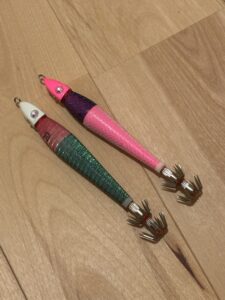 色々カラーやスッテも変更してやりましたが、これらが今回釣れてくれたエギでした。